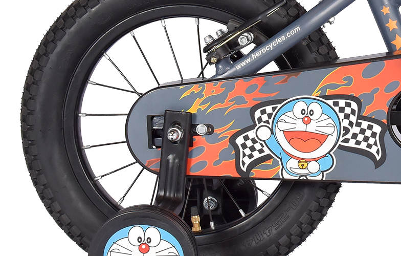 Doraemon Race On ensures comfort and safety of our little fearless champions complimenting their energy, fun and naughtiness to ensure growth and adventure. It's a single speed bike featuring rigid fork, V-Brakes & antifungal grips.